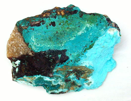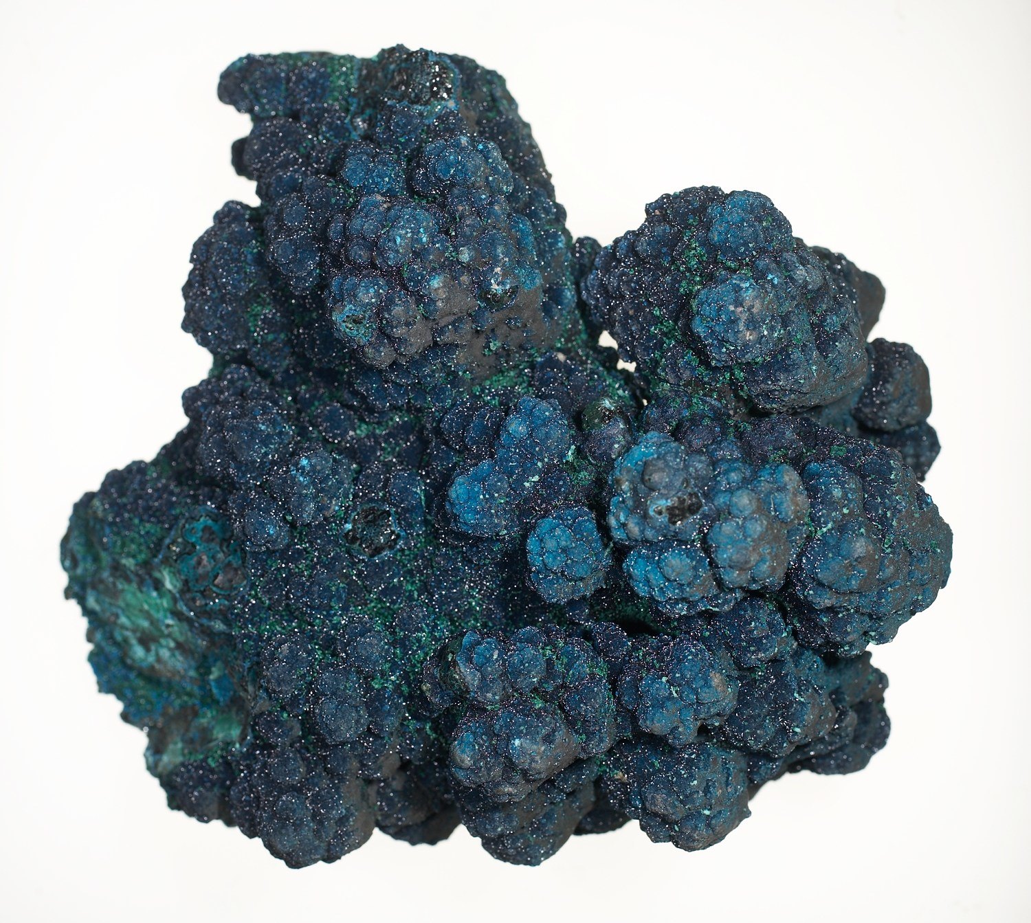 Colourful and spectacular mineral crystals are rare. Crystal growth needs time, space and a steady supply of chemical ingredients. One place where all this happens is the oxidised zone, where water containing dissolved oxygen and carbon dioxide seeps down through the ground into rocks containing metal sulfide ores, and dissolves them. This creates a rich ‘chemical soup’ that reacts with the surrounding rocks to form an array of different minerals.