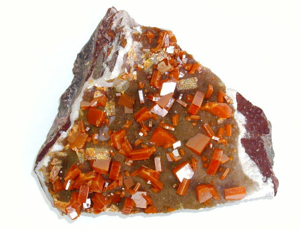 Large specimens of this vivid orange mineral with splinter-like crystals are found at Dundas.