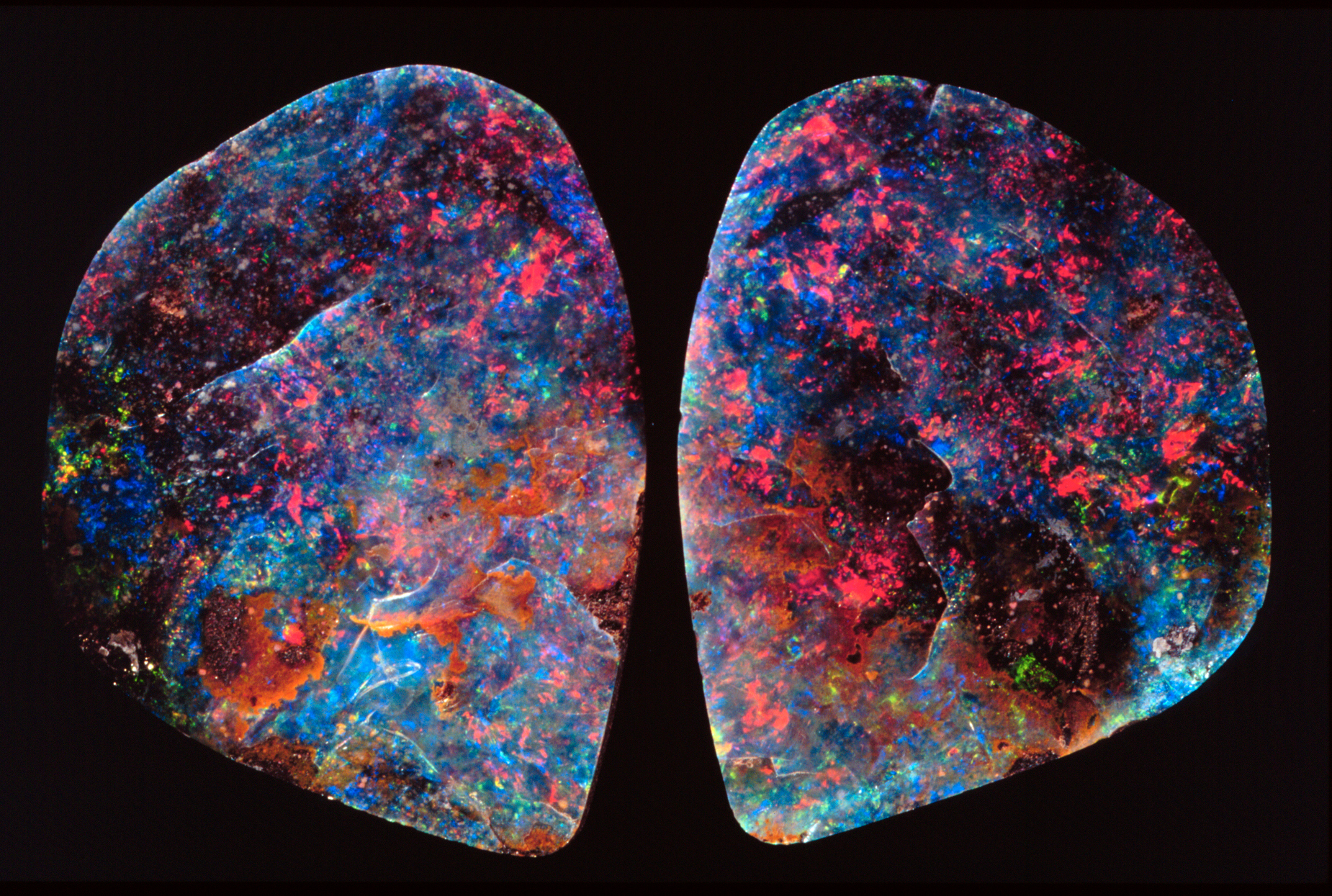 Gem-quality opal forms mainly in sedimentary rocks where the groundwater is rich in silica. Australia produces 90% of the world’s precious opal, mainly white opal. Boulder opal, a beautiful dark variety that forms veins in iron oxide, comes from Queensland. Shells and the bones of dinosaurs and marine reptiles that have been replaced by precious opal are sometimes found.