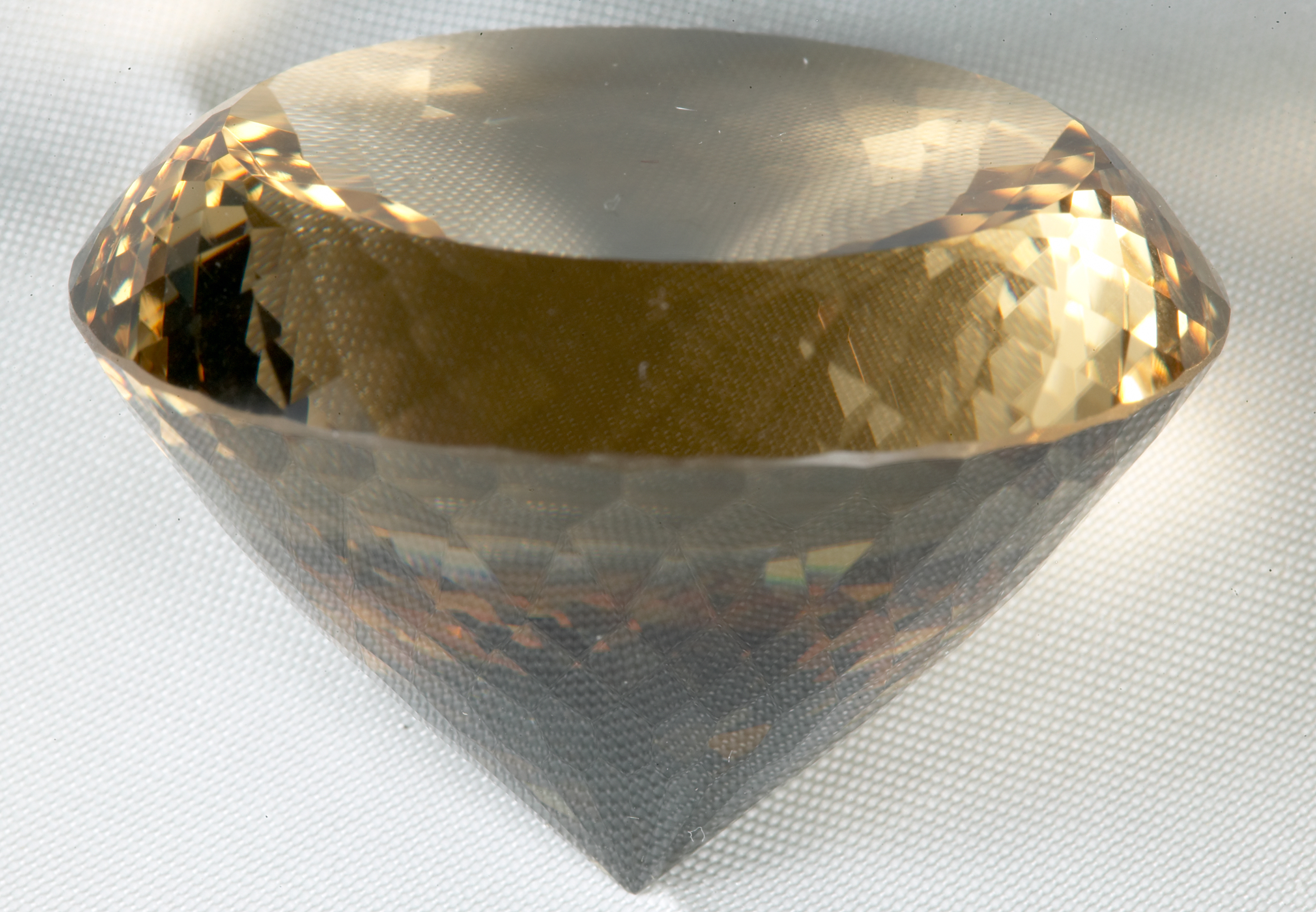 Diamond is a form of crystalline carbon and is the hardest mineral on Earth. Diamonds crystallise in the mantle and are brought rapidly to the surface by volcanic eruptions. An old volcanic ‘pipe’ at Argyle in Western Australia provides unusual champagne (pink to brownish) gem diamonds. The ‘four Cs’ – carat, colour, clarity and cut – determine the value of a stone.