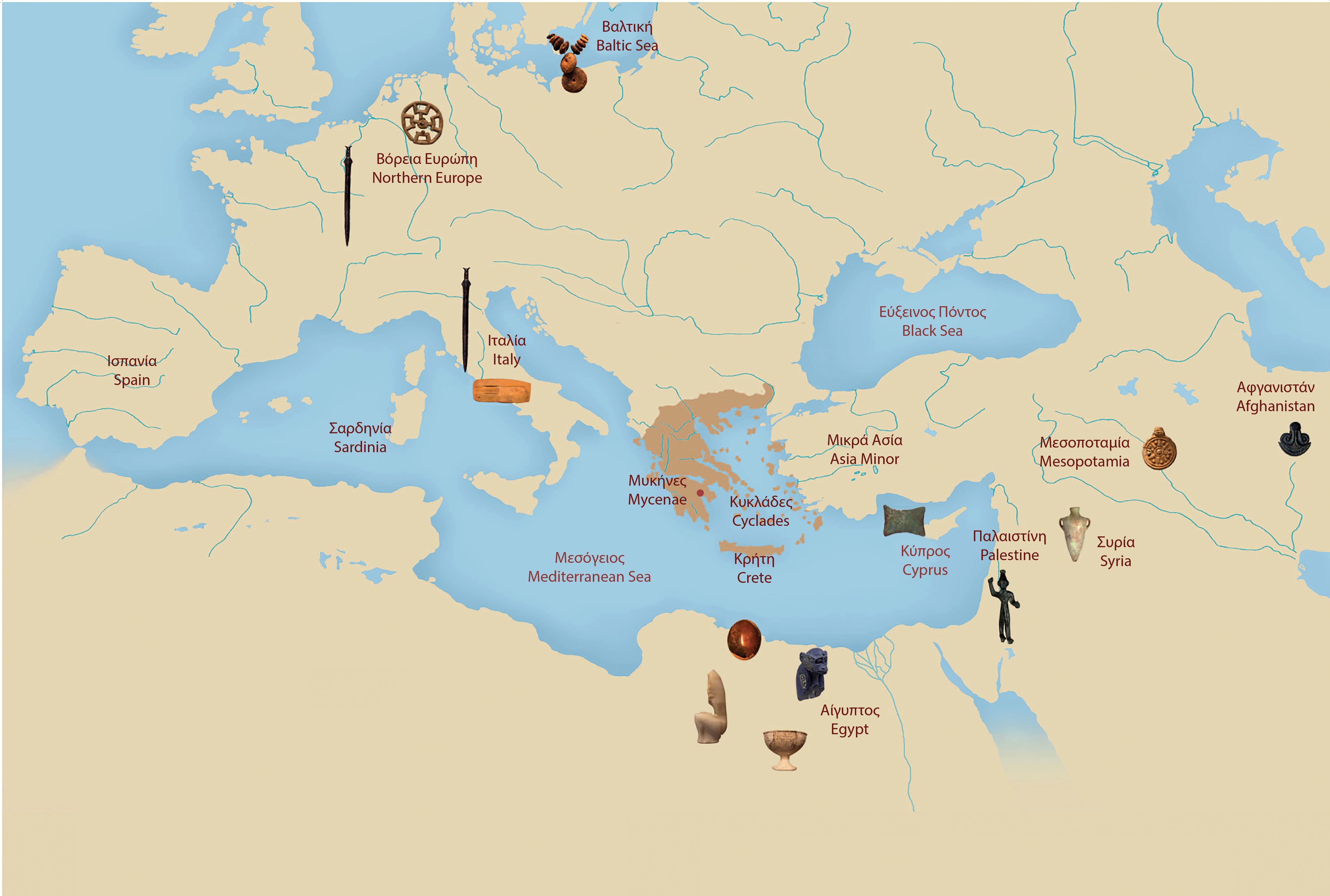 The collection of the National Archaeological Museum in Athens includes treasures made from materials such as ivory, lapis lazuli, amber and alabaster that originated in northern and eastern Europe, Africa, Asia and beyond.