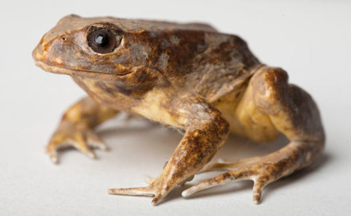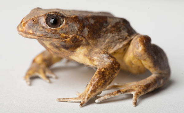 Baw Baw Frogs are unusual among amphibians for their ability to live in an extremely cold, high-altitude habitat. The adults are dark brown with lighter patches around the head. Their skin has many bumps and ridges, including a large paratoid gland that runs from eye to shoulder.