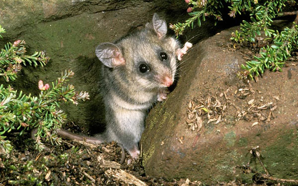 Mountain Pygmy-possums are tiny marsupials not much bigger than mice. They have thick grey fur, a long prehensile tail, and nimble feet for grasping and climbing. They are nocturnal and secretive.