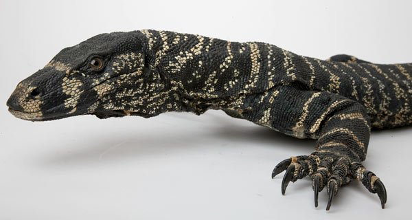 These lizards belong to a group called monitors. Monitors detect their prey with a special sense organ in the roof of their mouths called Jacobson’s organ. By flicking their long forked tongue out of their mouths, they transmit scent molecules to this organ. They forage for food in trees and on the ground.