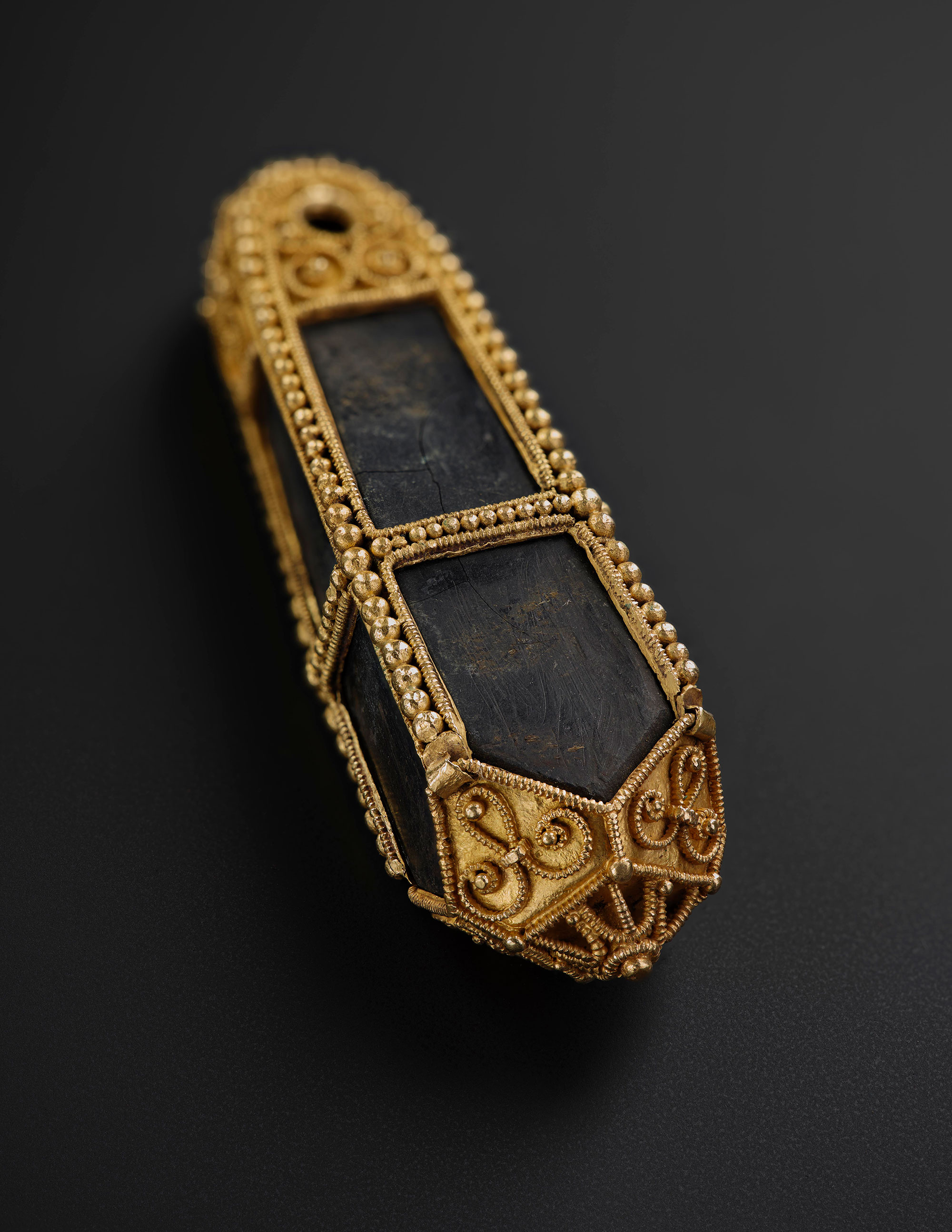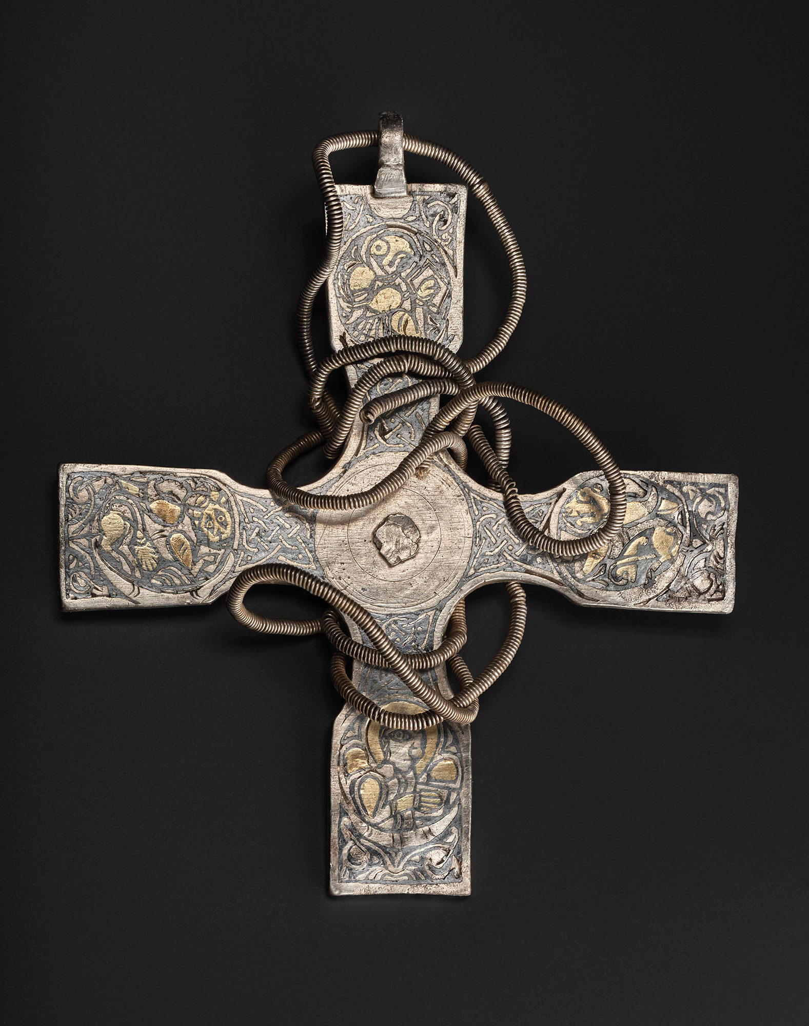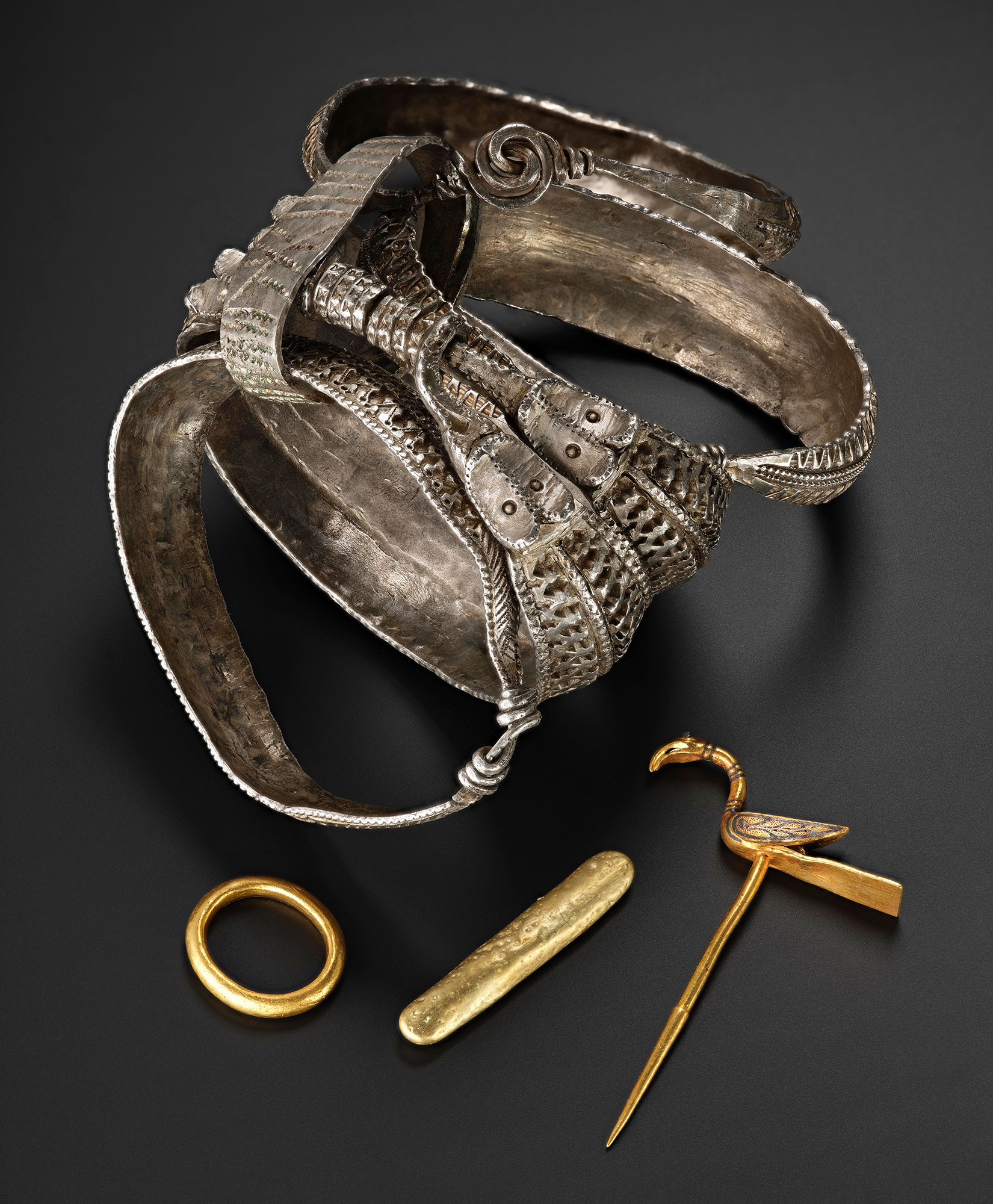 Buried around AD 900, and discovered in 2014 by metal detectorists, the Galloway Hoard brings together a stunning variety of materials and treasures from the early medieval kingdoms of Britain and Ireland, mainland Europe, and as far away as Central Asia. Containing over 5kg of silver, gold and other materials, the careful way it was buried helped preserve incredibly rare organic materials such as silk and other textiles. With its unique range of rare objects and ancient heirlooms, it has transformed our understanding of the Viking Age in Scotland.