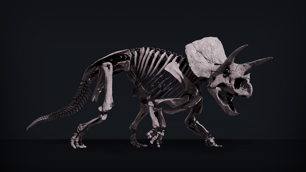 Adjust the slider to see how Horridus the Triceratops might have looked with skin.