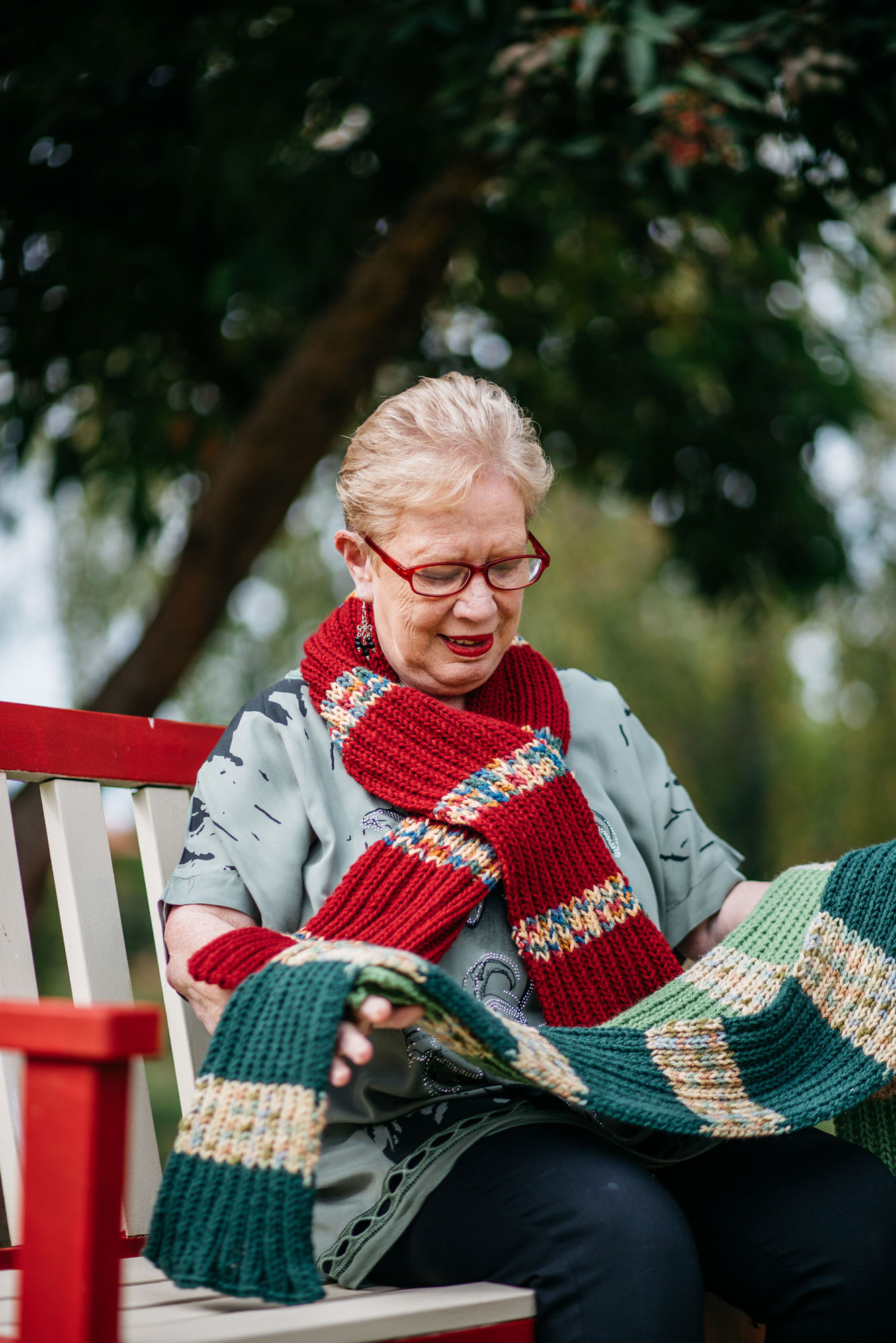 Motivated by the opportunity to help those in her local community who were experiencing homelessness, Diana immediately set about recruiting fellow knitters within her retirement village to join her in knitting woollen scarves and beanies. ‘If you’re living off the streets, you need everything that you can get that will keep you warm’, she reflected, ‘and a scarf is something – once you’ve got the back of your neck and around your neck warm and a beanie on your head – it seems to make you feel a bit better, and a bit warmer… a big thick woolly scarf and a beanie goes a long way.’