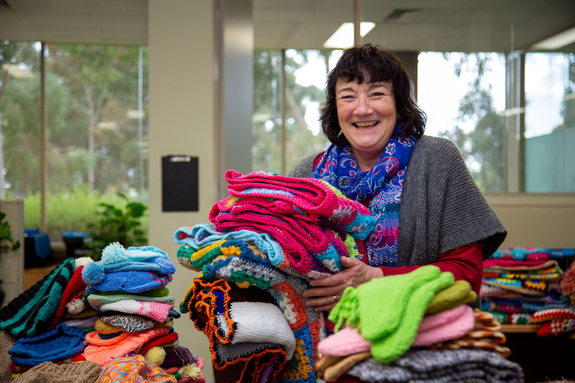 According to Jacinta, the Knit One Warm One Project provided important relief and support to the community, and went some way in lifting the spirits of recipients: ‘Those who received some of the material goods provided by the Knit One Warm One campaign were grateful to receive the items’, she reflected, ‘and being able to inform them that a volunteer from the Maroondah community had personally knitted the item gave them a sense of belonging in the community. Many individuals commented on how grateful they were to receive the items and were seen wearing their scarves and beanies on subsequent visits.’