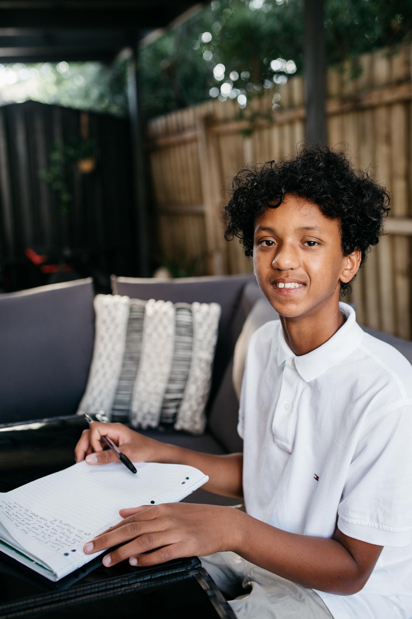 Living with his family in the north-western suburbs of Melbourne, Kofi Aden had spent the first months of COVID-19 lockdown at home with his two brothers, his father Abdi, and his mother Angela, an aged care nurse. Like many children and teenagers across Melbourne, Kofi had grappled with the challenges of home-schooling, as well as missing his friends, classmates and regular social and sporting activities. ‘The main change was my routine and the routine of our home,’ recalls Kofi. ‘I was unable to play basketball and see other people in general.’ His father remarked at the time, ‘It is good that we are all healthy and are coping with the lockdown. It is hard as we do not know what will happen and how to prepare.’