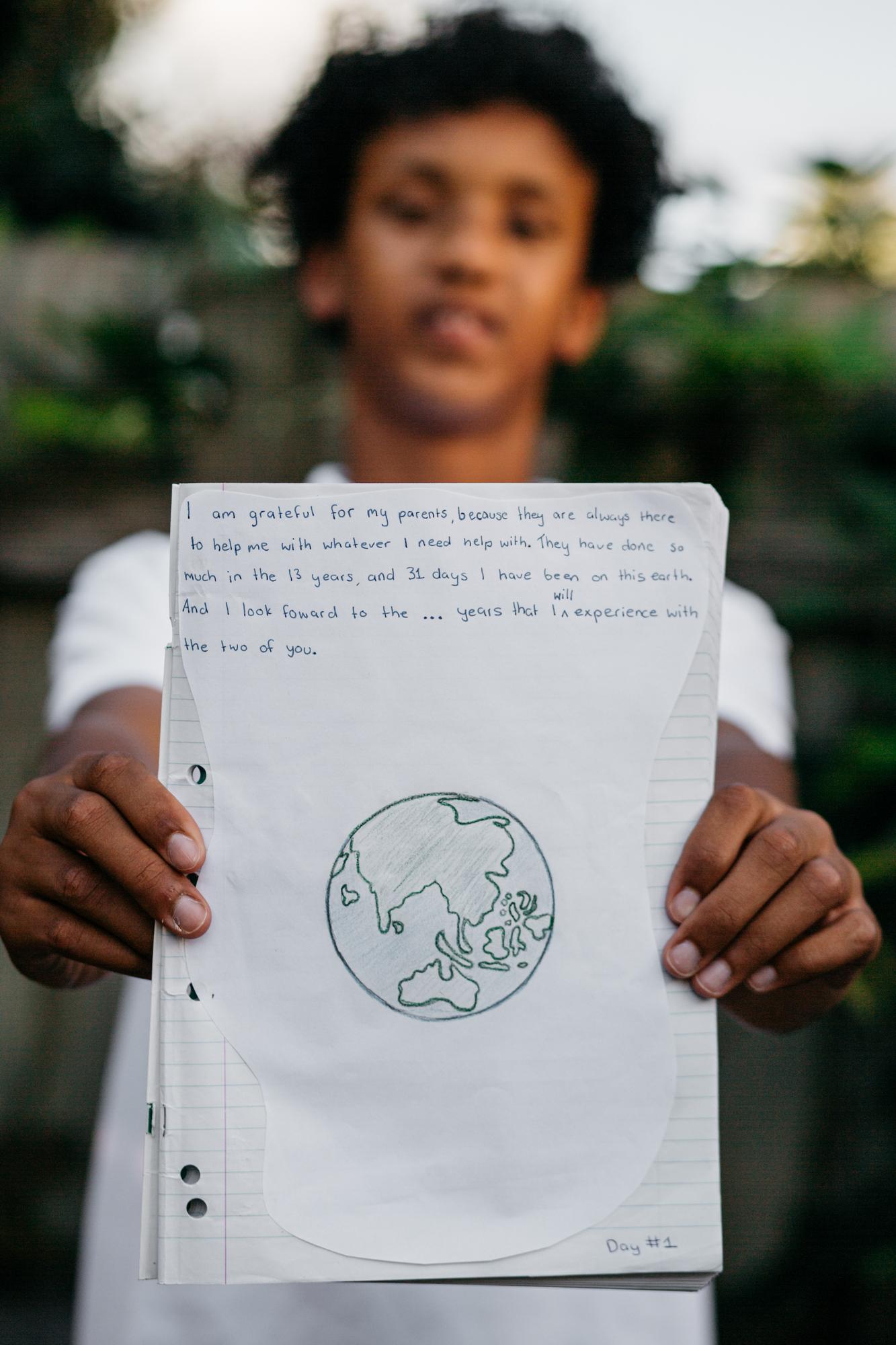 Amid the uncertainty and despair circulating online, youth worker and public speaker Abdi Aden posted a photo of his thirteen-year-old son Kofi’s Gratitude Journal to “The Kindness Pandemic” Facebook page. Kofi’s entry read: 'I am grateful for my parents, because they are always there to help me with whatever I need help with. They have done so much in the 13 years and 31 days I have been on this earth. And I look forward to the … years that I will experience with the two of you.