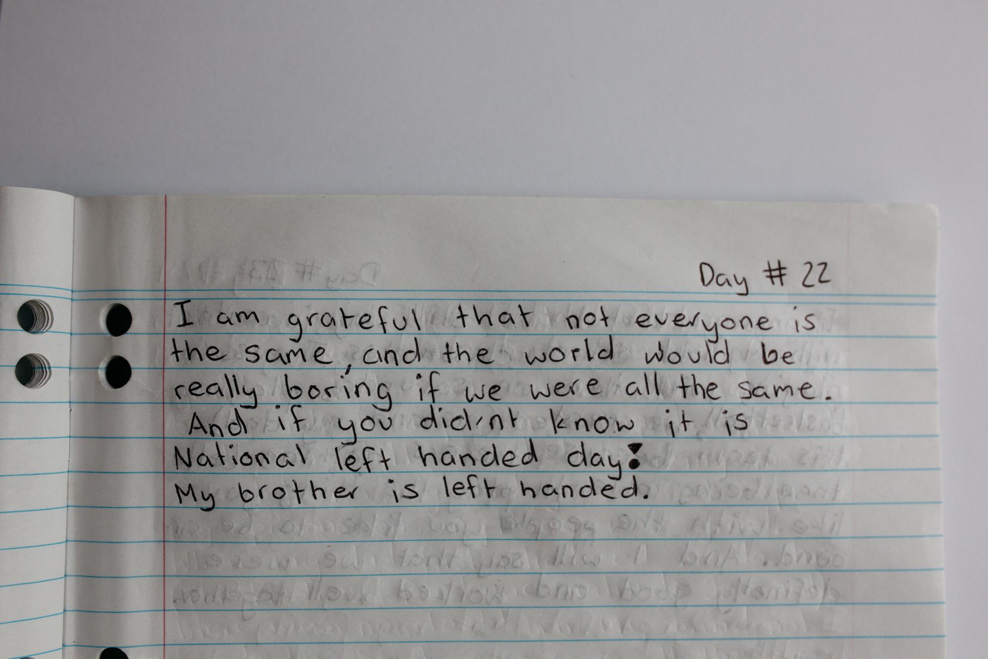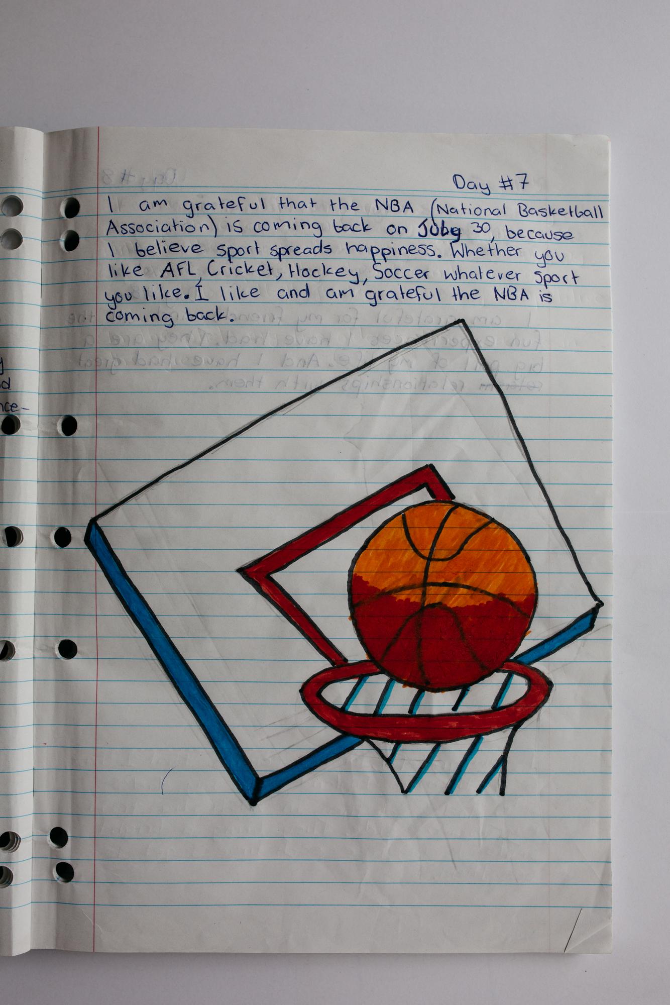 The beauty of Kofi’s journal entries lies in their sincerity and simplicity. They come from the heart and are a celebration of those everyday things in life we often take for granted, such as sunny weather or the company of our pets. Kofi’s gratitude posts shone light on the national heroes of COVID-19 such as health care and frontline workers (like his own mum), or teachers and their support of students in the transition to remote learning. Yet Kofi also gave thanks for the factors that directly improved his life such as the environment, being tall (thanks to good genes from Dad!), his grandma’s amazing vegetable garden, his aunty (who sent the family doughnuts), sports and his passion for the NBA (National Basketball Association), new books, his drama teacher (who made the class fun even though drama isn’t Kofi’s thing), and his two older brothers (even though they sometimes beat him at basketball).