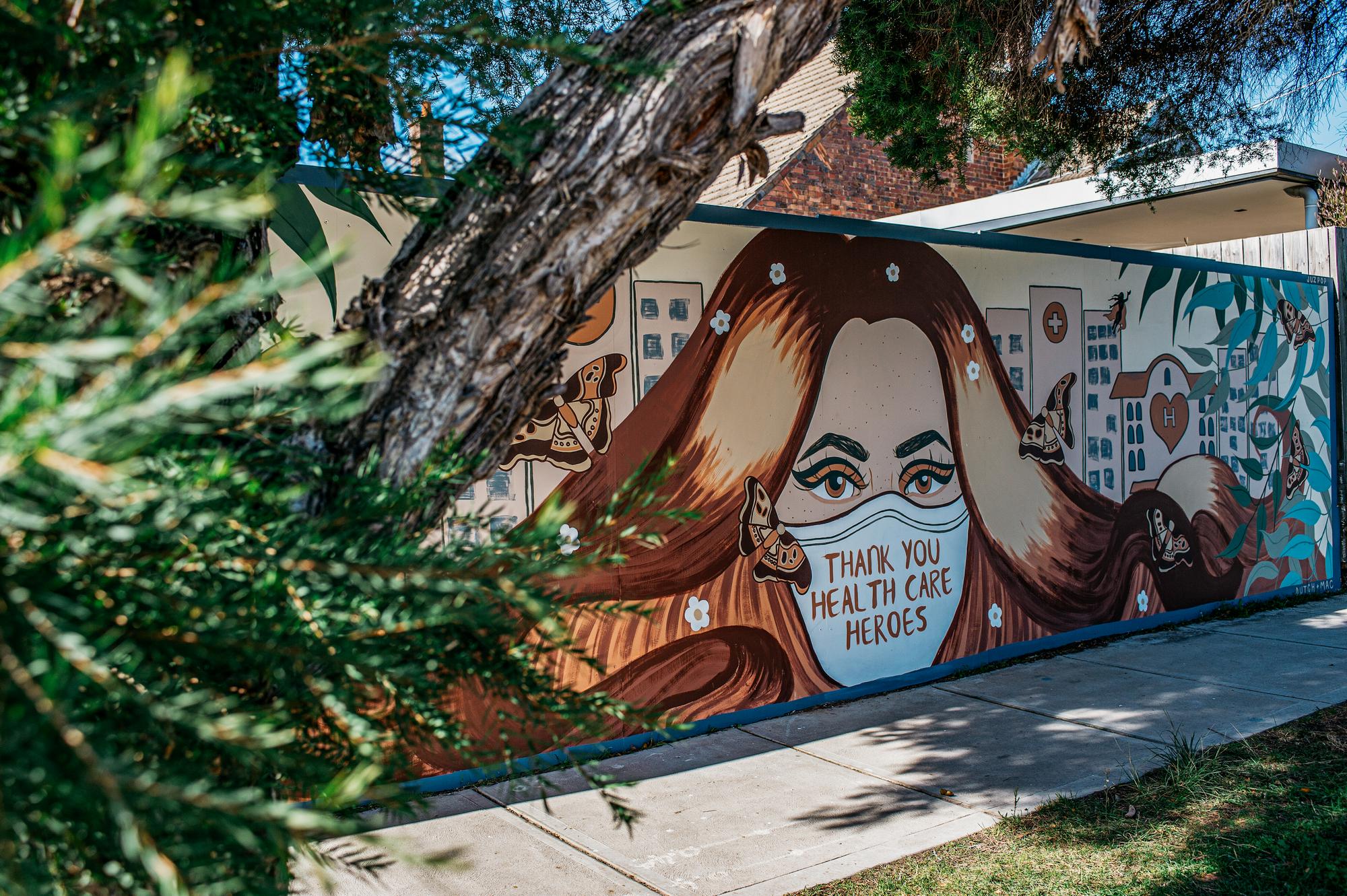 In late April 2020, a hand-painted wall mural emerged on the streets of Caulfield North, Melbourne, paying homage to healthcare workers and thanking them for their service during COVID-19.