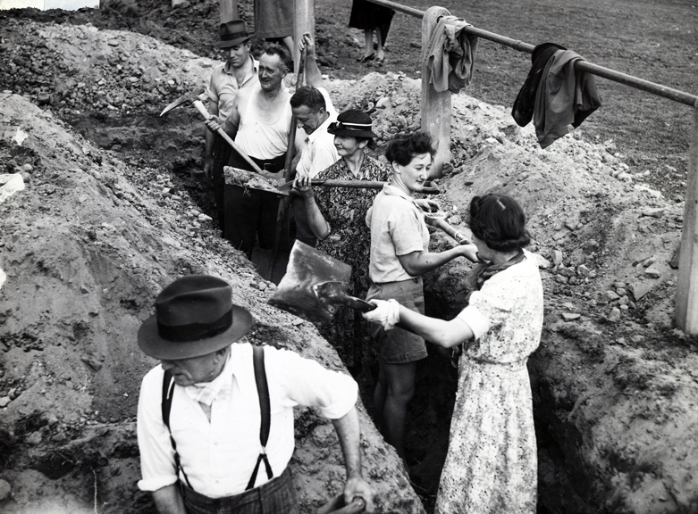 Just seven weeks earlier, Singapore (then a British colony) had fallen to Japanese forces and Australia suffered casualties on home soil with the bombing of Darwin—the threat of invasion was looming, and the population was on high alert. Trenches were being dug across Melbourne, while air raid shelters multiplied in suburban backyards.