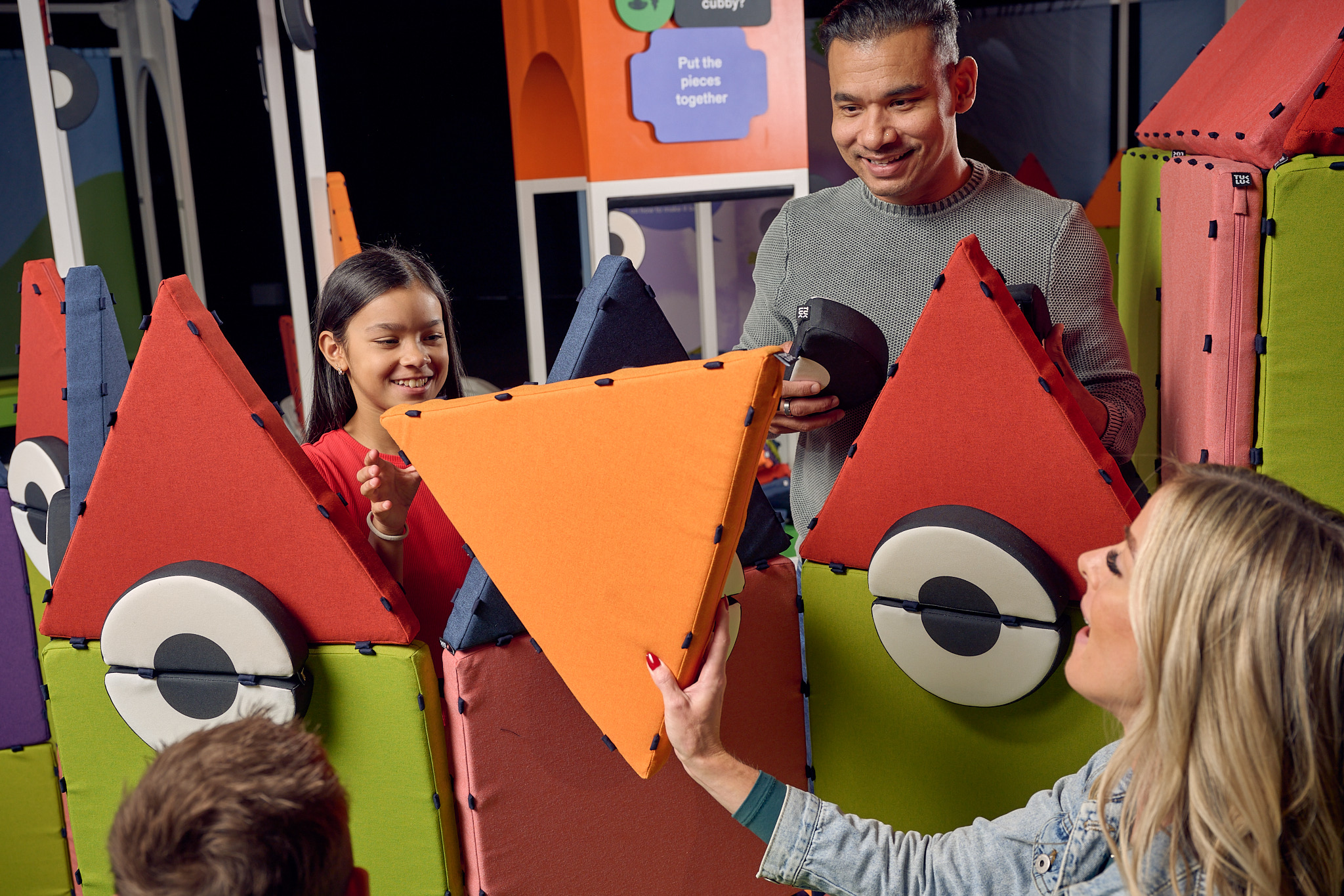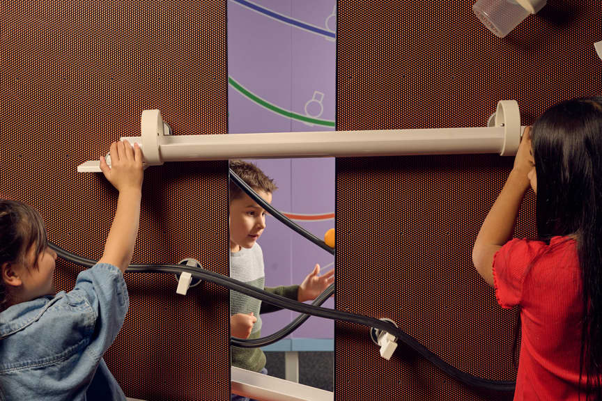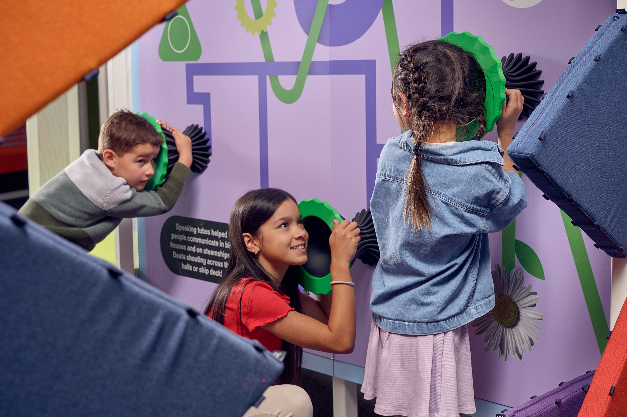 The Neighbourhood Ring has interactive walls where I can experiment with Whisper Tubes, code a message or create a pattern in a giant popper wall, make a rollercoaster track or solve tangram puzzles.