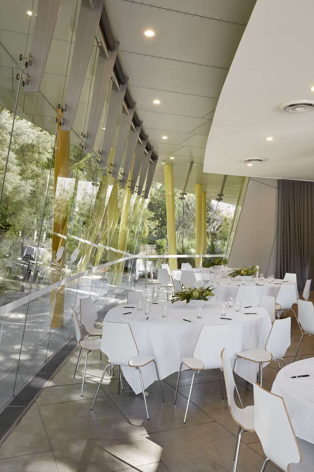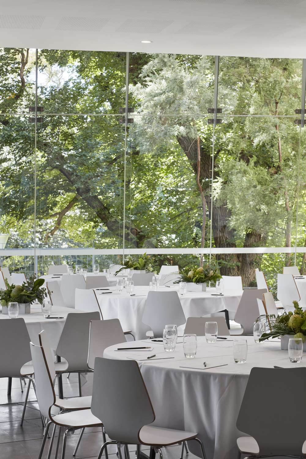 Floor-to-ceiling glass envelops the purpose-built function space, allowing beautiful views over historic Carlton Gardens, and with a backdrop like this one, no wonder it’s a favourite spot for wedding receptions and significant group lunch events.