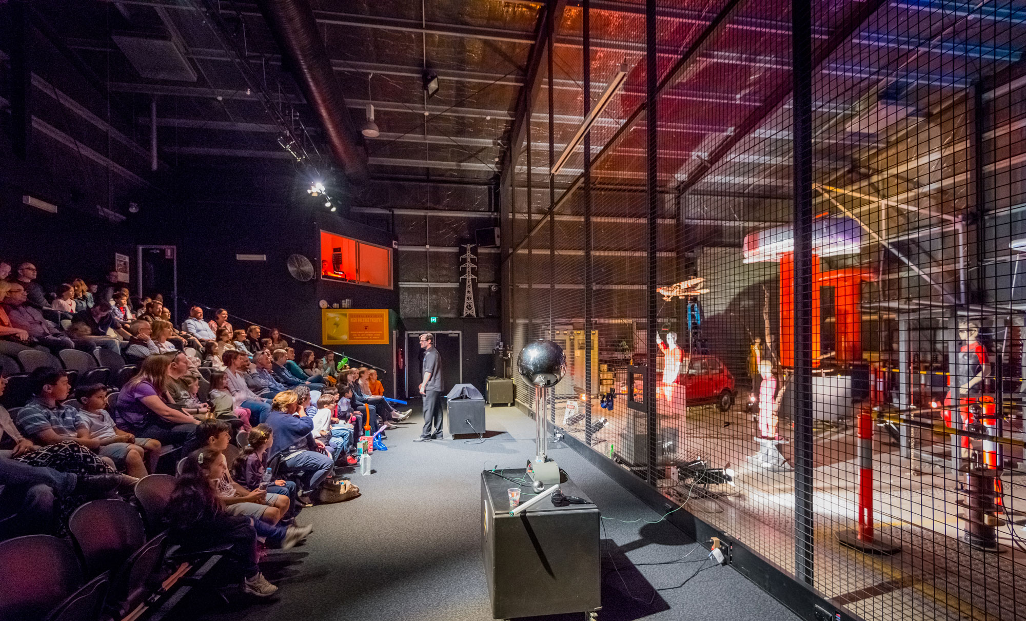 Perfect for giving your event an electrifying atmosphere! In the Lightning Theatre we have a fascinating Tesla coil – watch the two megavolt machine conduct electricity and shoot out beams of purple lightning. You can simply hire the Lightning Theatre for an exclusive show, or, as well, take advantage of the auditorium-like theatre for presentations of your own.